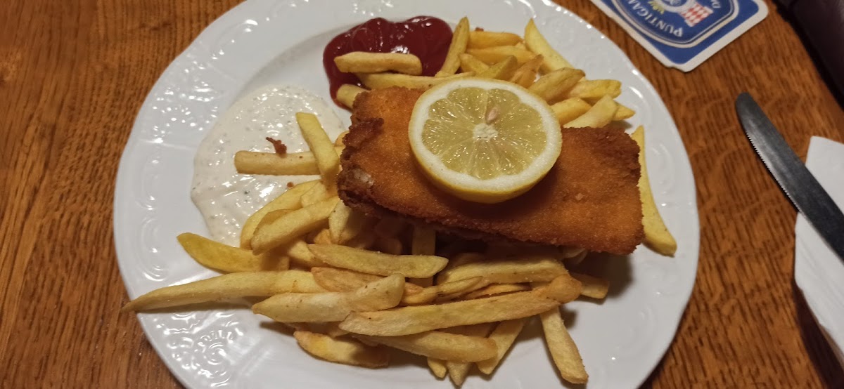 A nice local cafe/imbiss. Don't expect a Michelin Star taste but I think it was fine. We tried schnitzel and fried fish, both were nice. People were really kind and we were able to communicate in English. As I can see, locals come here for some beers and sausage or simple but tasty fried food. Prices were reasonable.